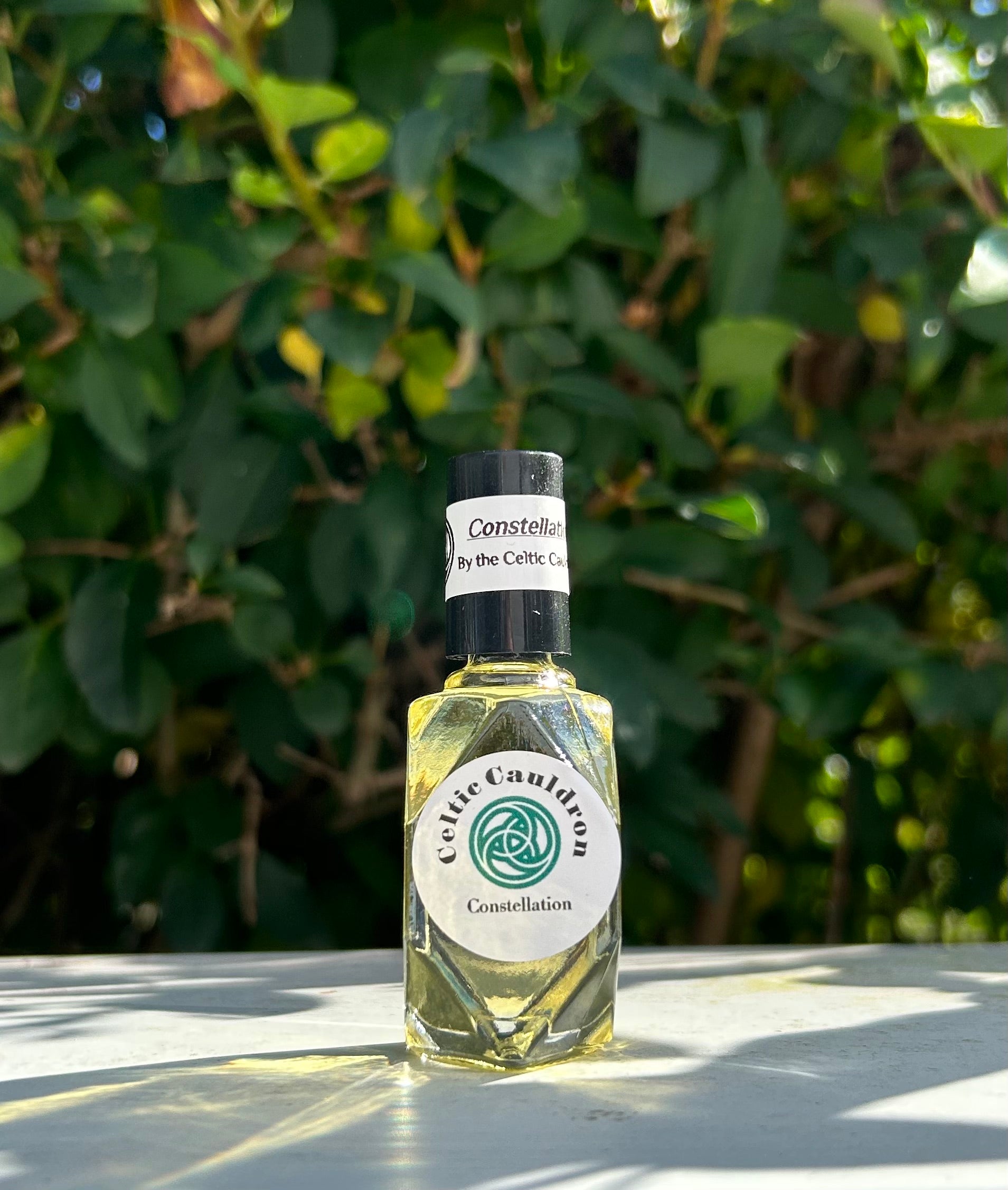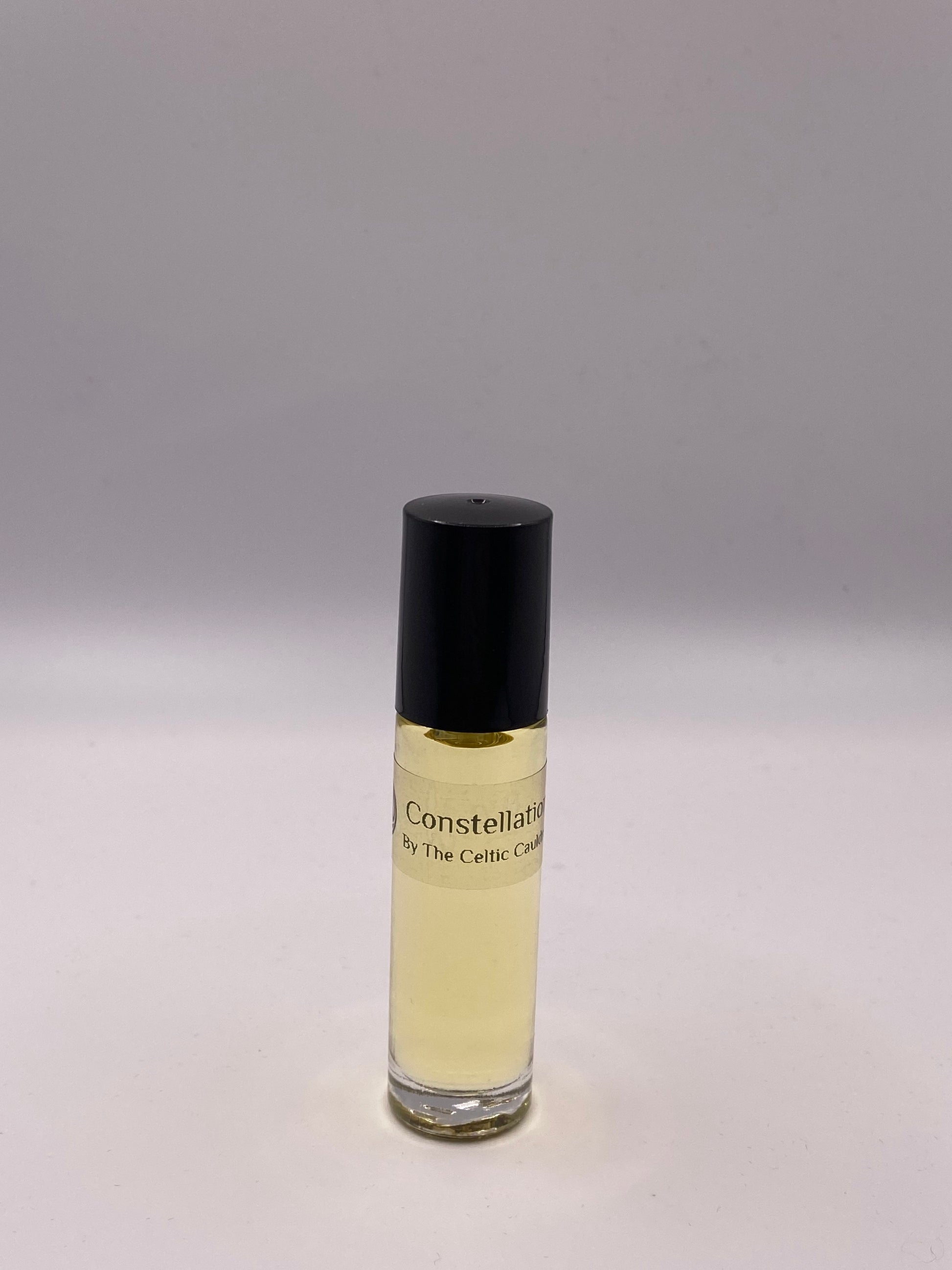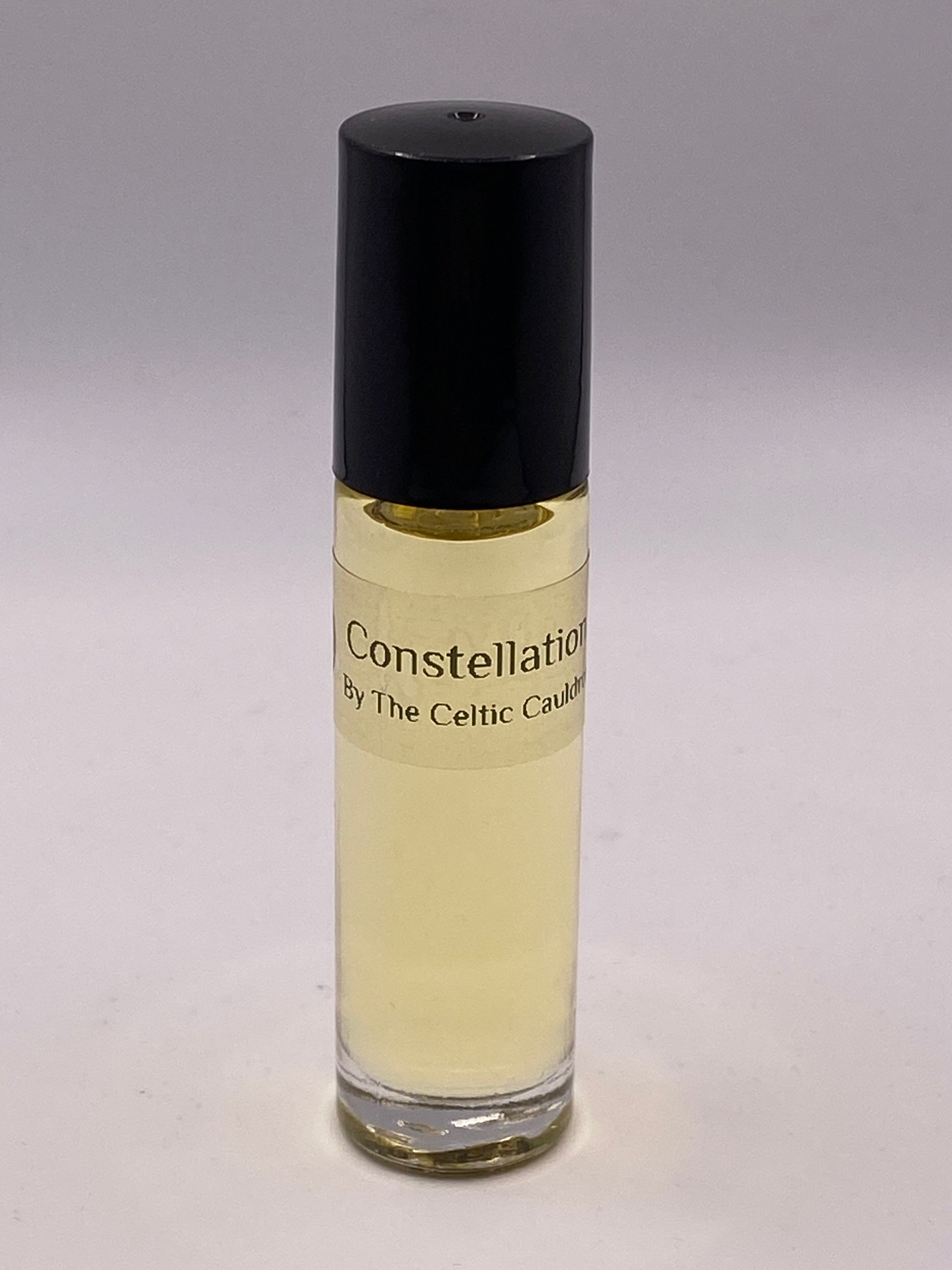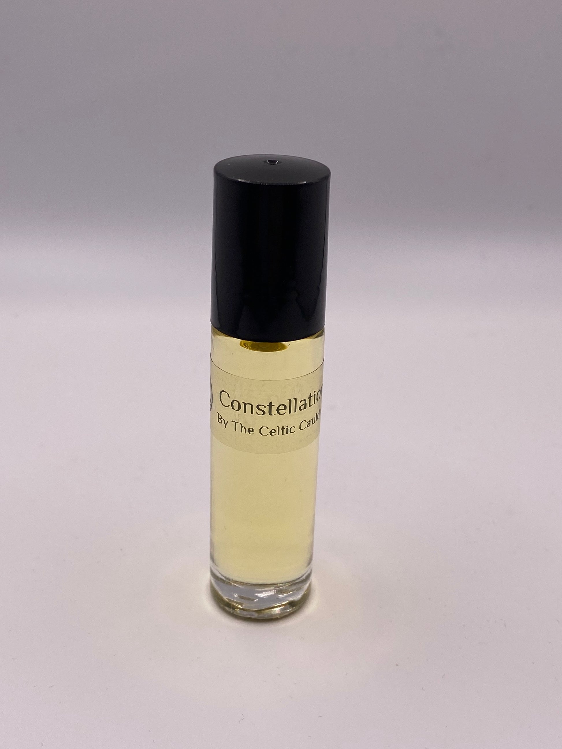 Constellation has the feeling of a summer garden at night gazing at the stars, with starflower, amber, greens and light floral - soothing and enlivening. Available in 1/3 OZ and 1/8 OZ sizes.