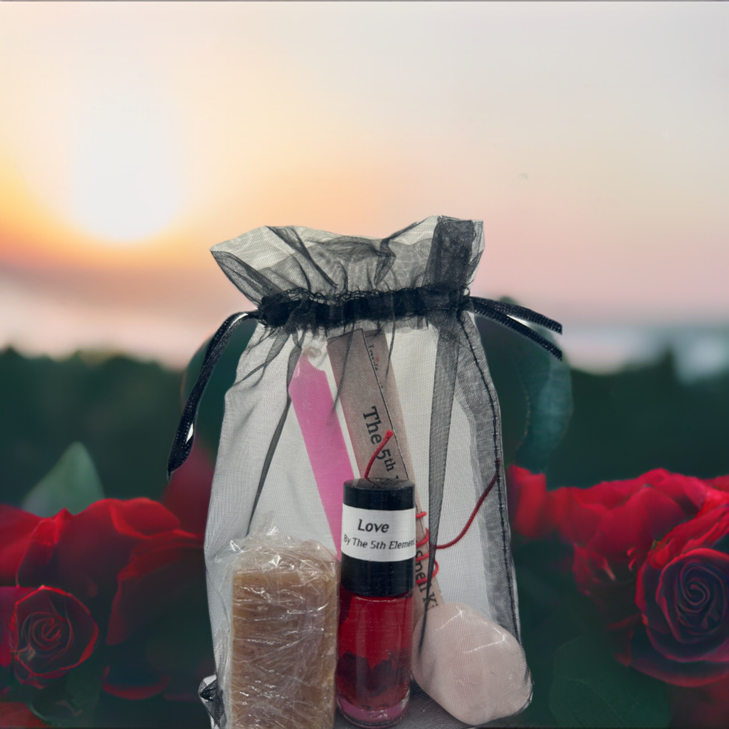 Embrace the magic of love with our handmade Love Spell Kit! Our Love Spell Kit is Infused with positive energy and includes our hand blended Love Spell oil in a petite roller bottle, a chime candle, a rose quartz stone, organic cleansing soap, and a scroll with spell instructions. Embrace and radiate the energy of love in all its forms.