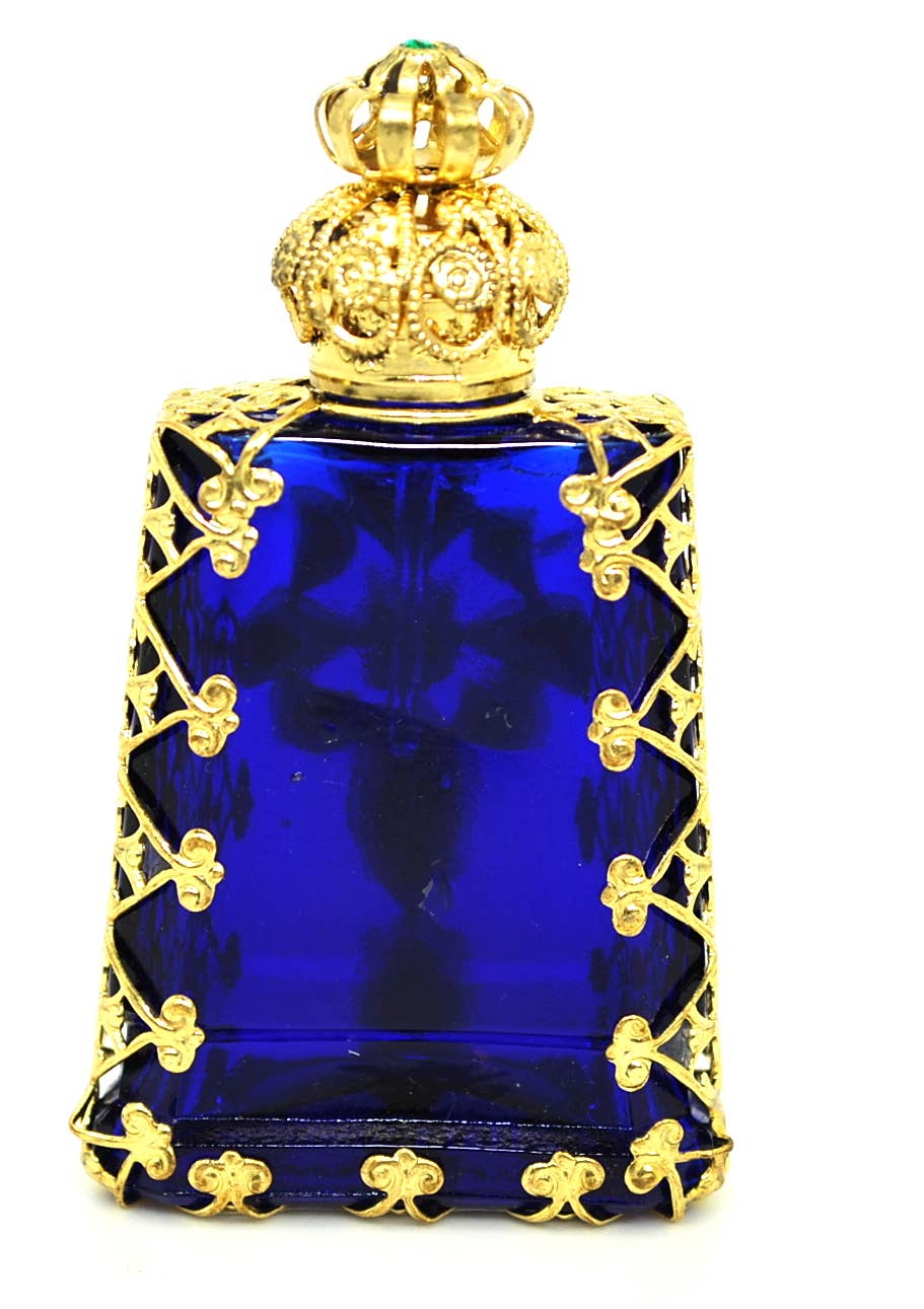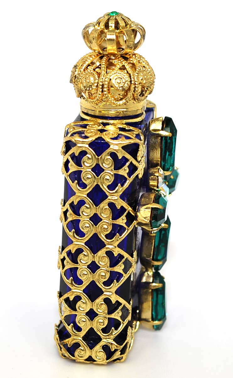 Perfume Bottle is historical replica of traditional old model made before centuries. Bottle is hand mouth blown into metallic moulds, wiring is hand made and soldered, stones are also carefully hand placed into the wiring.