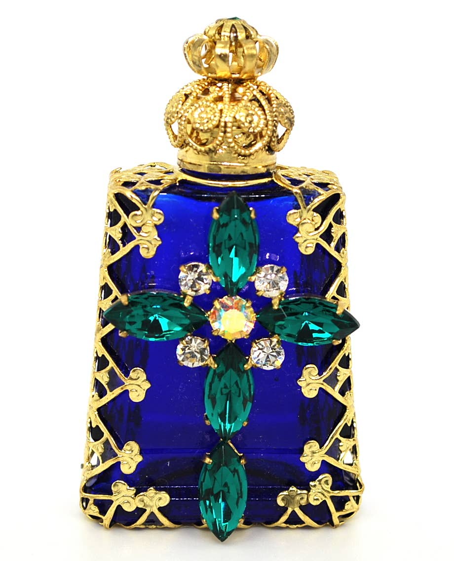 Perfume Oil Bottle - Czech Jeweled Decorative Christian Cross