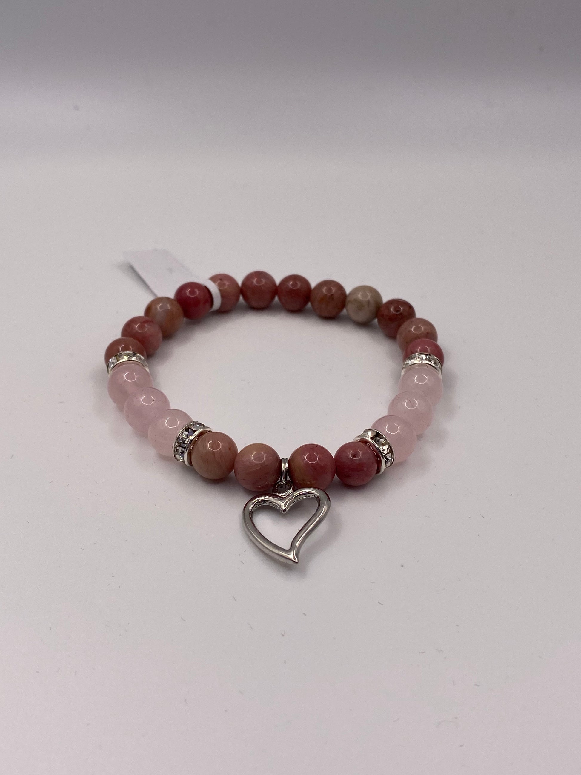 Heart Bracelet with Rose Quartz and Rhodonite