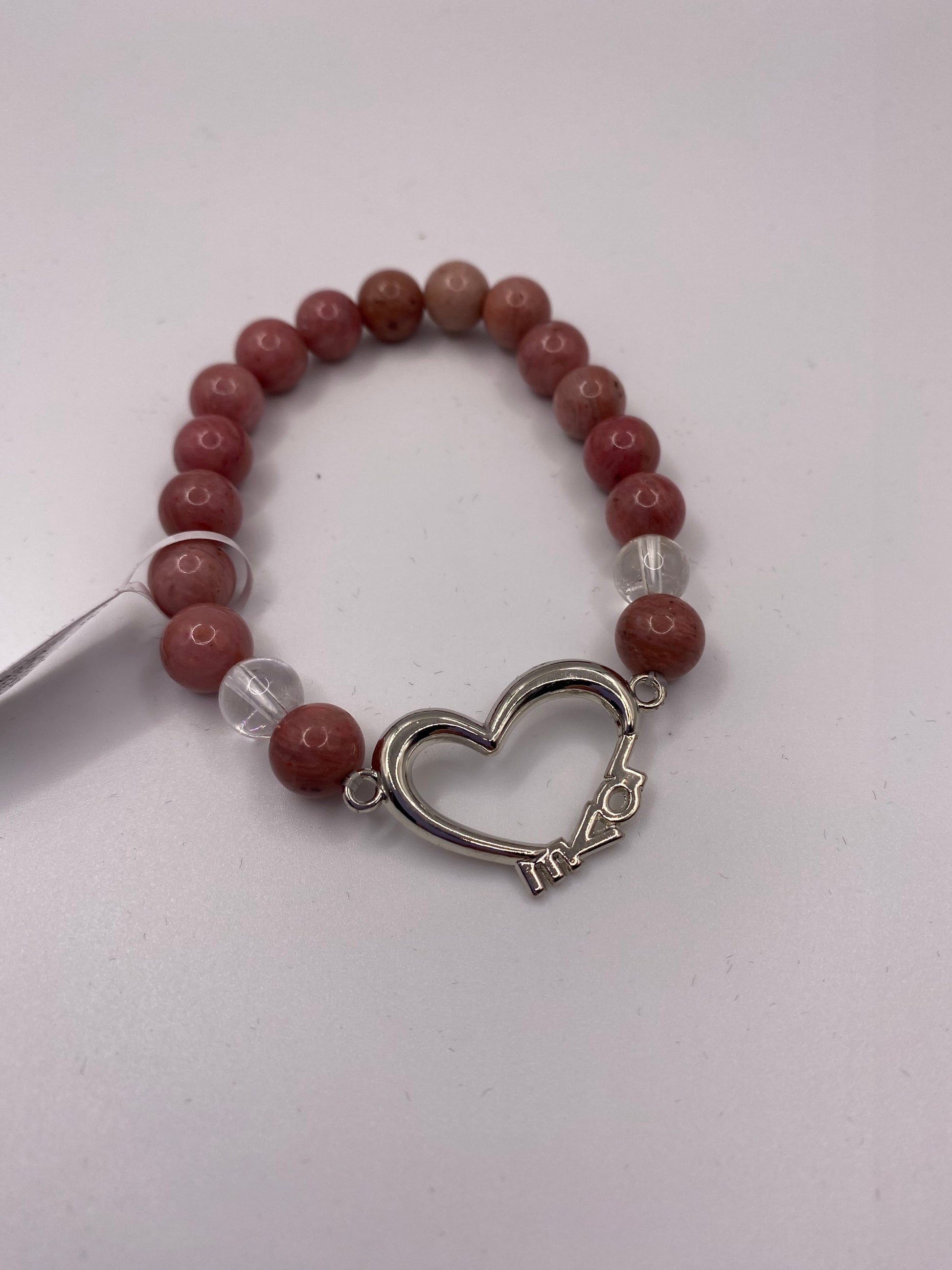 Love Heart Bracelet with Clear Quartz and Rhodonite