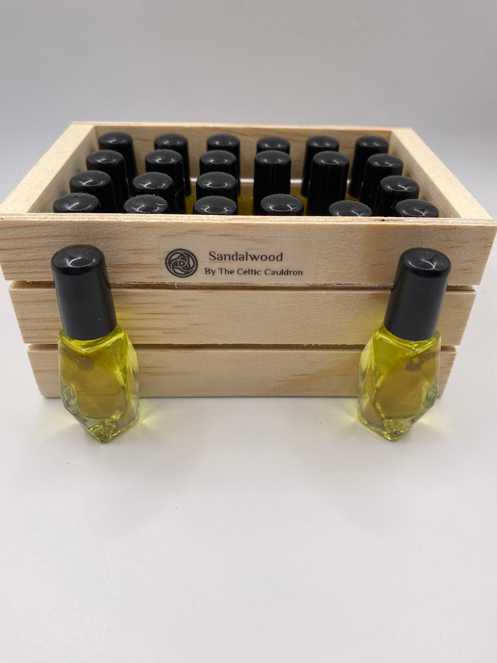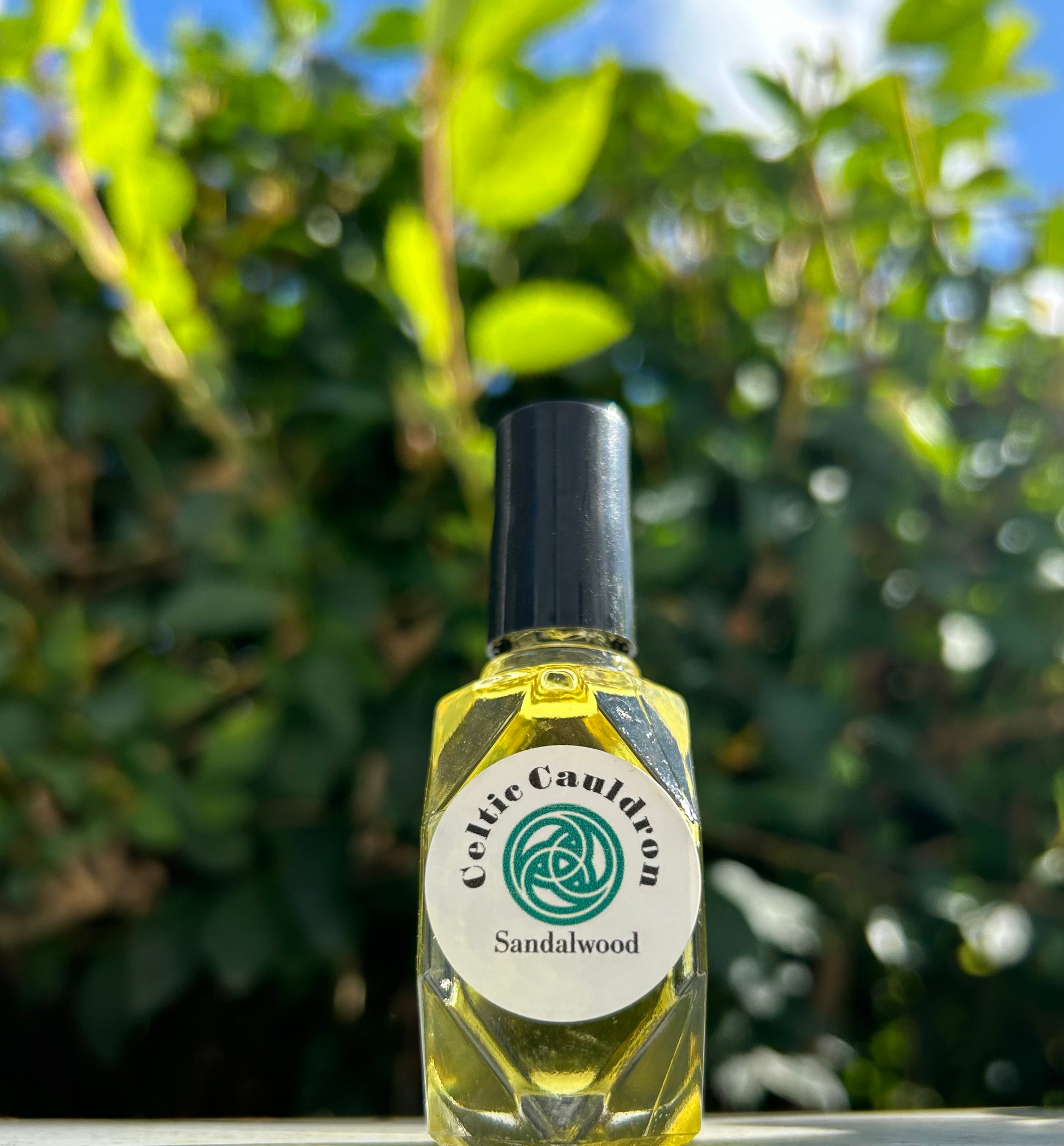 Customer favorite Sandalwood Perfume oil fragrance is made from traditional ingredients for a soft, seductive, long lasting enlightening scent. Available in 3 sizes: 1/2 OZ bottle, 1/3 OZ roll on, and 1 dram size (1/8 OZ) mini diamond bottle.